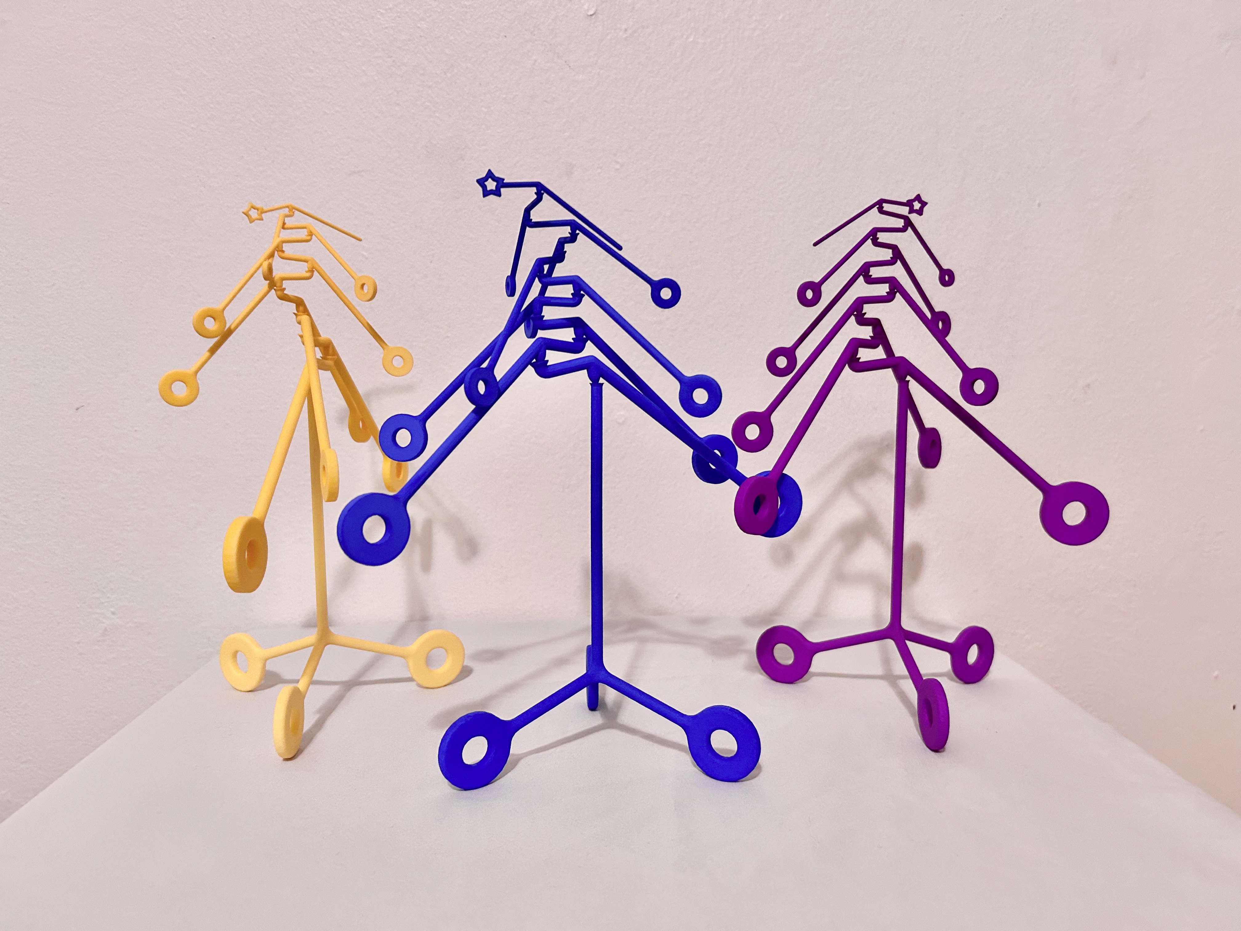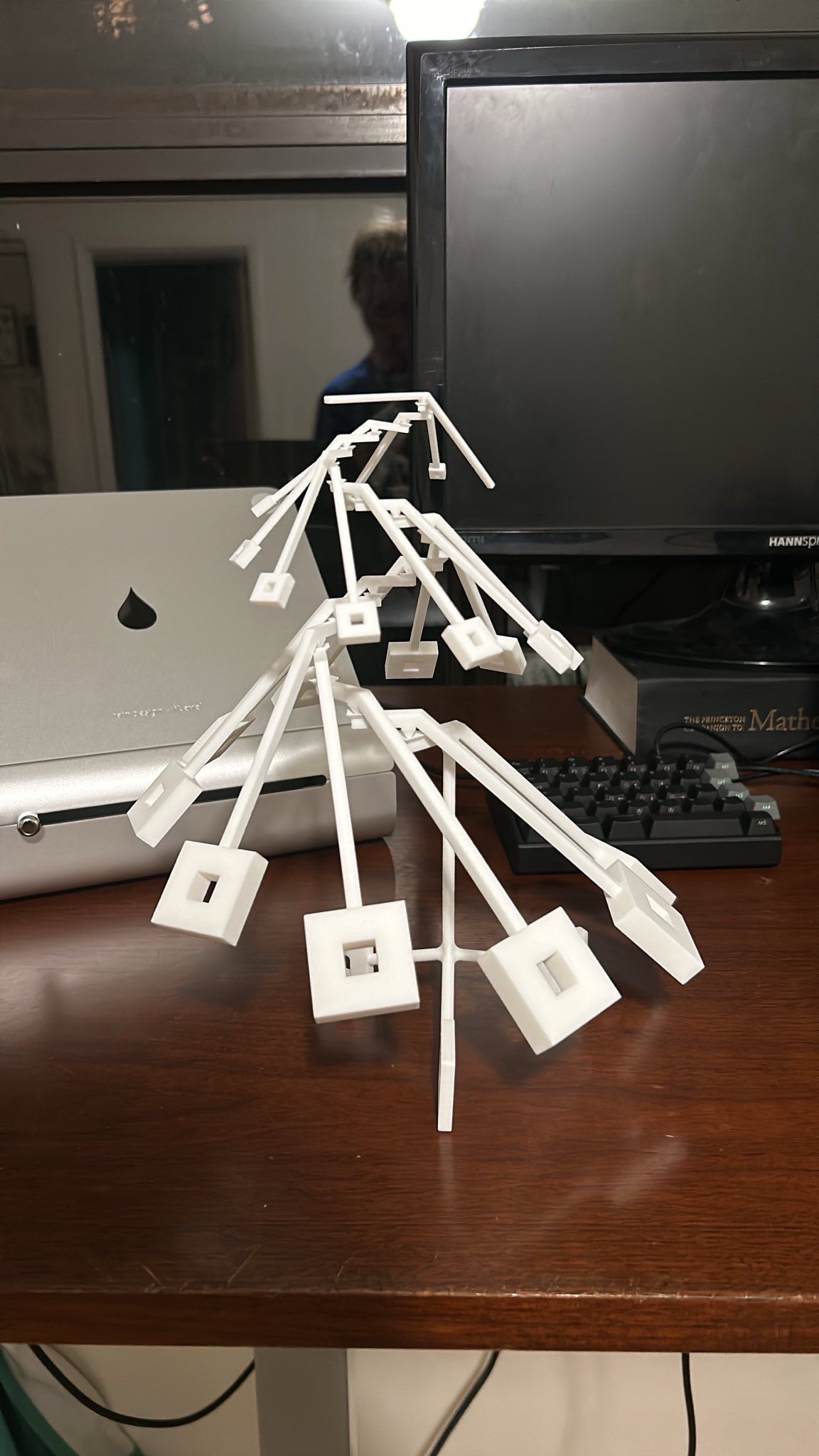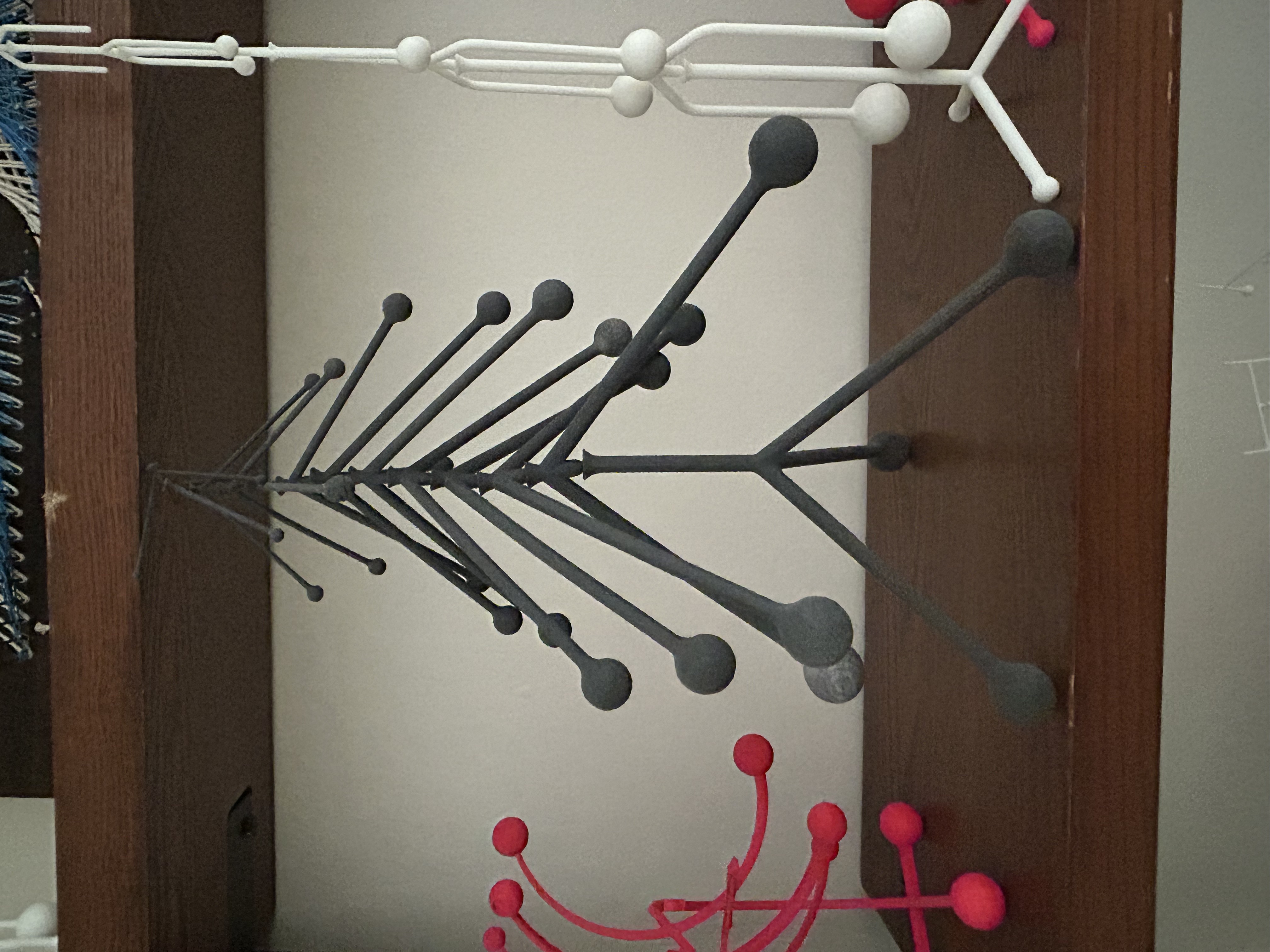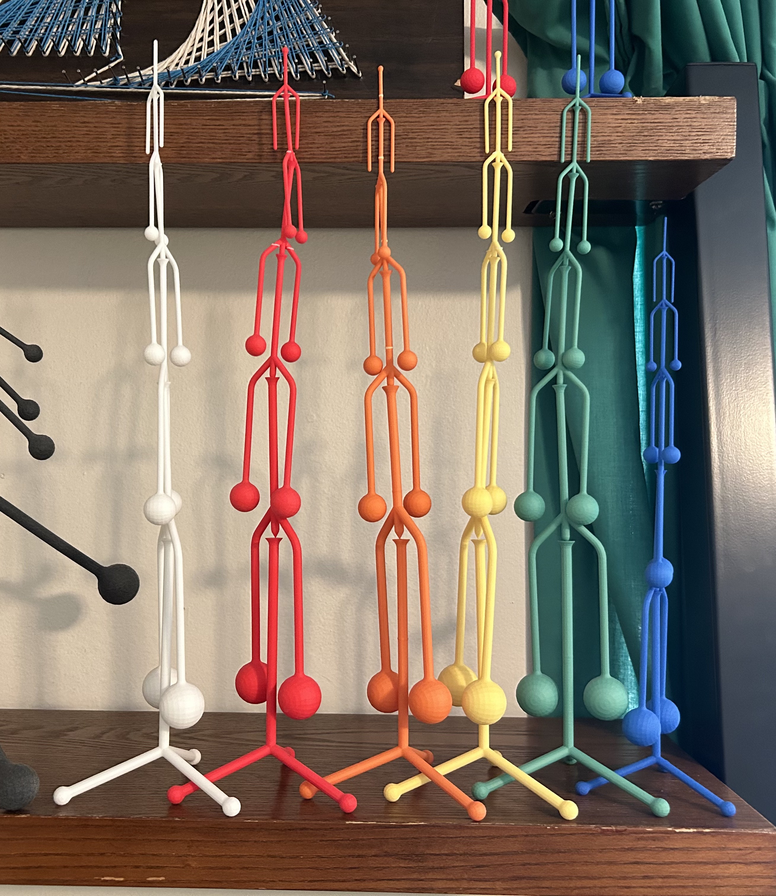 Upon reflection, I’m pleased with the progress I’ve made in the past two years developing new gravitrees. With the earrings, pocket gravitree, and the wooden Monstera, I pushed the boundaries of size and material, and with the Triangulum and Autogravitree I pushed the previous boundaries of gravitree aesthetics and design methodology. I’m most pleased with the designs that look most different from my “traditional” balls-on-sticks appearance – really like the aesthetic of the Triangulum – and it seems exciting to explore how different I can make the structure look and still have it balance.