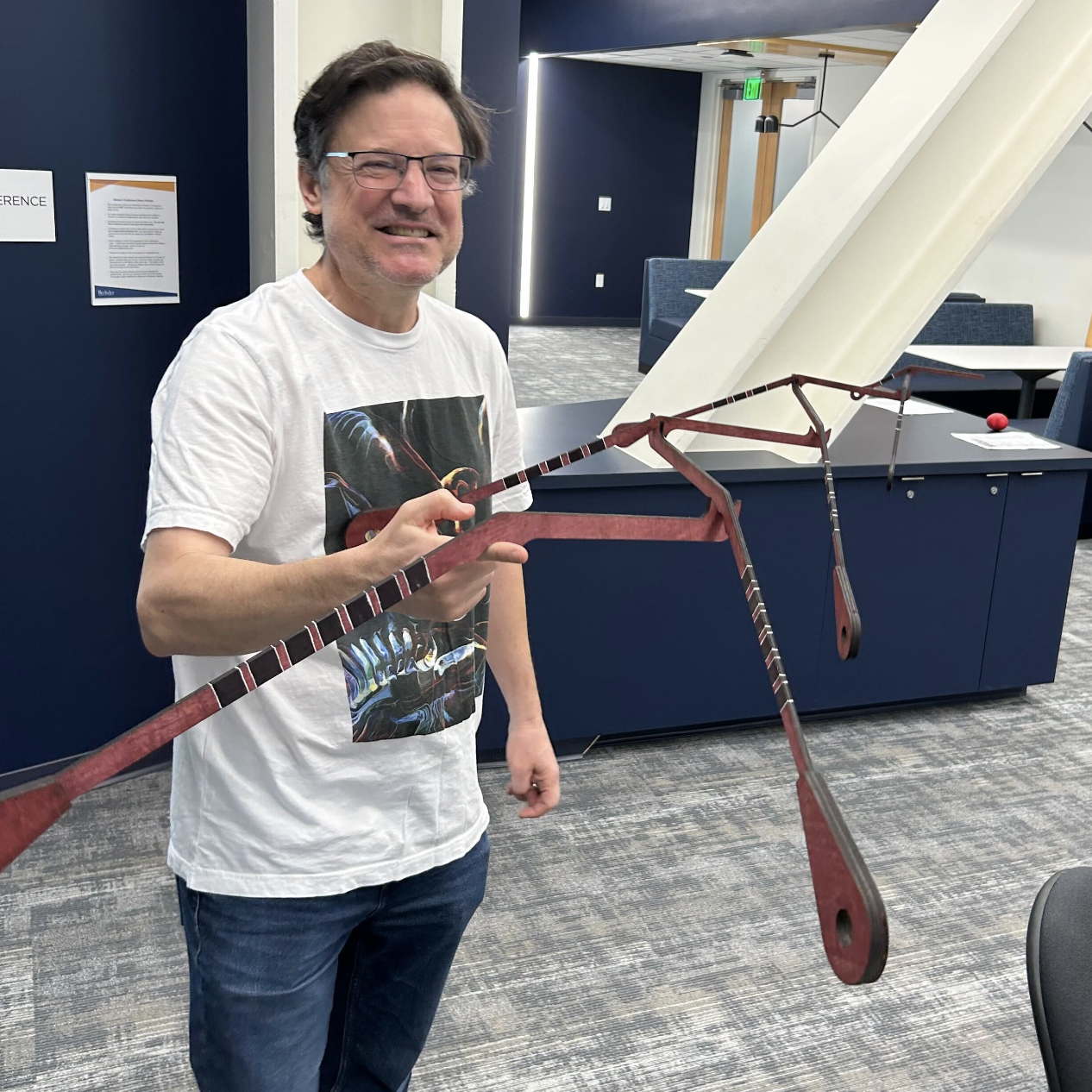 With a five-foot span, it’s the biggest gravitree I’ve ever made. It’s lasercut wood that I woodstained.
