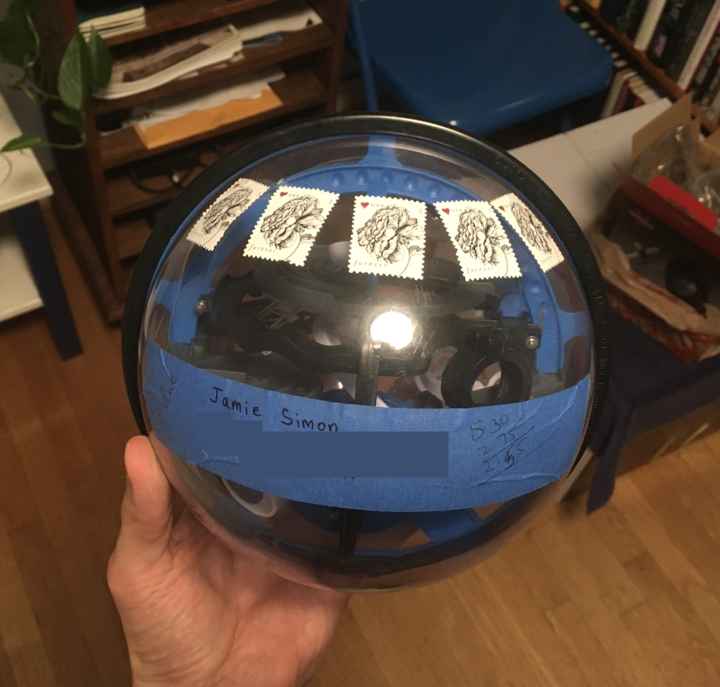 There are an infinite number of ways to mess with the postal service, though, and alone I’ve tried only a handful. The theme’s worth some more variations. I once led a group of children at a summer camp in mailing random objects, but only so much is accessible in the middle of the woods. At the end of the spring 2020 semester, I and 11 other members of my physics cohort formed a group to mail each other weird things in the style of a secret Santa. The group, dubbed the University Society of Postal Shenanigans (USPS), finished its first round in June. Here are our results, ordered subjectively by the mailed object’s ridiculousness.